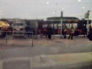 I order a one Euro coffee and perch myself on a high stool gazing sleepily out on to foggy Edelsinnstrasse and the bus and tram-stops of the 7A, 8A, 62 and Badnerbahn. Many people, mostly dressed in dark colours, wait impatiently, invariably smoking and then, as the buses approach, discarding their cigarette butts onto a pavement already awash with the detritus of the tobacco industry. Threadbare pigeons mooch around hunting for something peckable, whilst nearby a stocky dog looks on waiting for any excuse to bite something with feathers or skin. And there is a constant flow of people; the young, the old, the badly dressed, the suspicious, the tired and the unconventional. It reminds me of a language school.
