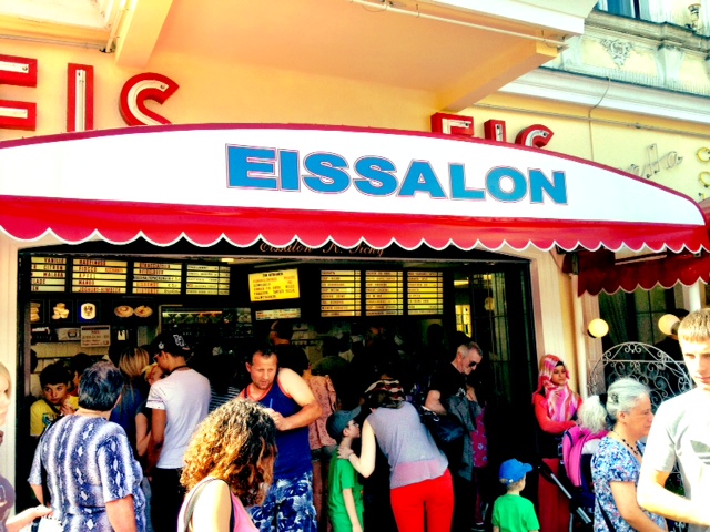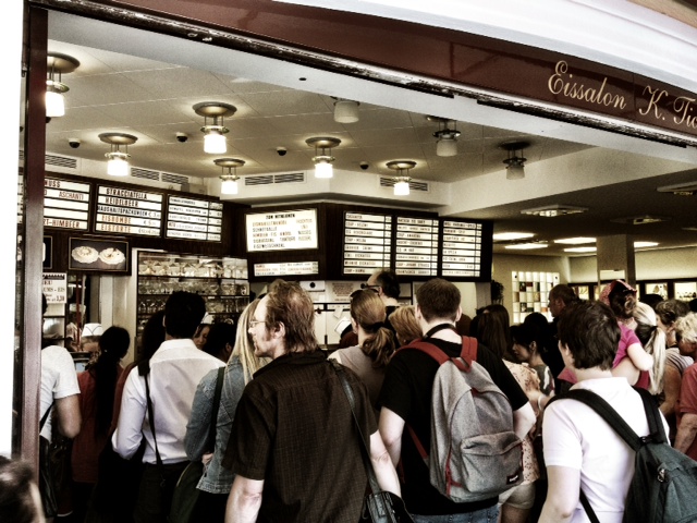 Tichy is Vienna’s most famous ice-cream shop. Debate rages about whether it has the best ice-cream but everybody has heard of it. Their system for queuing is such that there is no system. The only way to describe it is as a mass scrum of people shuffling in the general direction of the counter trying not to be edged sideways or backwards by the other patrons who want to kill you. In short, it is every UK expats worst nightmare.