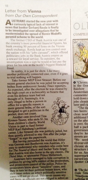 In truth, the column bothers me. It bothers me because I am not sure what the central message is mostly because it is full of supposition, hearsay, fantasy, jumbled facts, wild assertions, some entirely feasible, but not unique to Austria, and some just downright daft. It reminds me a little of the letters I used to write accompanying my CV when applying for jobs.