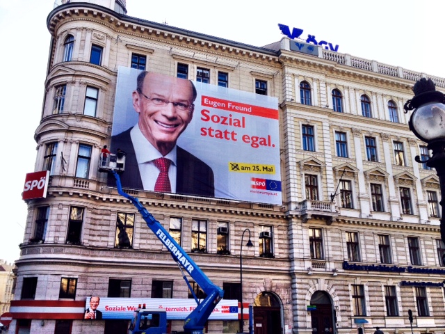 Walking through town this week on the way to see a man about my eyes, I came across this enormous poster adorned on the side of the headquarters of the Socialist Party of Austria: