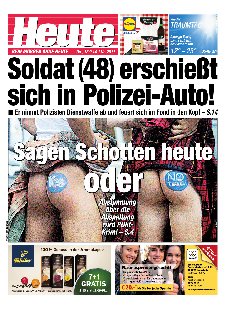 Heute, on the other hand, but not much, is generally more restrained sporting the Bond inspired strap-line “Kein Morgen ohne Heute” (No tomorrow without today). It contrives to appear serious but superficial with an international section (WeltHeute), politics (PolitikHeute), the economy (WirtschaftsHeute) and national news (yes, OsterreichHeute). There is always a half-naked woman, sometimes topless, and occasionally a male model – the male model is generally topless but not a half-naked woman. There is sport, TV, quite a lot on Vienna and plenty of the usual guff framed around the suspiciously dubbed “Szene” which involves the kinds of people who are jurors in talent shows or previous contestants in talent shows.
