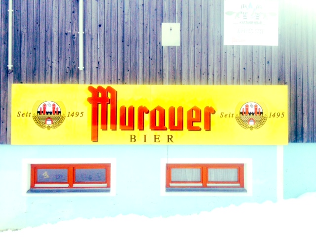 As I mentioned, our destination this year was again Murau, specifically the mountain of Kreischberg set in the heart of Styria, in the heart of Austria about 250 km from home. Murau is a perfect little town, set on the river Mur, in the beautiful Mur valley, with some tiny little streets, a “castle” and a brewery brewing one of the greats of Austrian lager (Märzen) – “Murauer”. It is the type of place that has a signpost for the local midwife or solicitor, several roundabouts – which reminds me of home – and it is called “Bierstadt” which is the only phrase the tourist board needs to get me to visit. In fact there is very little not to like (or demur).