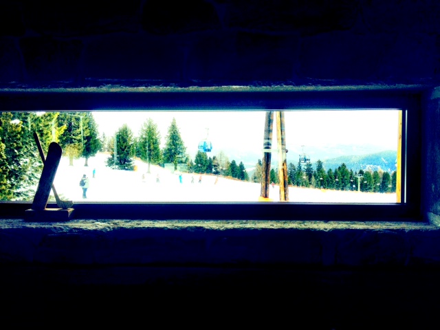 Next it is off to the piste but not before you have take all the clothes off your younger child who suddenly decides he/she needs what we used to call a big one. Ablutions taken care of, you are provided with the first punitive shock of your holiday: the price to actually ski on a mountain (about 125 big beers for 6 days, 2 adults and 2 children; youngest free). This is not cheap or expensive, this is normal. Then you queue (shuffle on mass like multi-coloured penguins) for the cable car but first passing through the ski-lift entry gates with its immortal, computerized salutation wishing you – hold on to your hats – a “good fart”. Loaded up, hoping you haven’t forgotten a child, you are whisked up the mountain across silent wooded slopes and empty, perfectly combed ski runs, snow flakes glittering like precious stones in a diamond mine worked by seven dwarves.