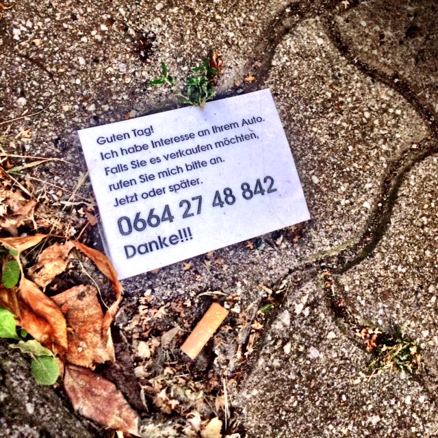 I leave home for the short walk to the school. Stepping onto the street I notice two things. First, it is incredibly muggy. This does not bode well for a group of parents crammed into a primary school classroom with a south facing vista and tiny chairs. Second, the street is shockingly free of litter. One can only surmise that the street-cleaning orange gods (the indefatigable MA48) have made their monthly visit. Life quality is a nebulous notion at the best of times, no more so than in the removal of rubbish. Even so, I inwardly express gratitude to Stadtwien for their impervious commitment, although I still cannot quite explain why they contrived to forget:
