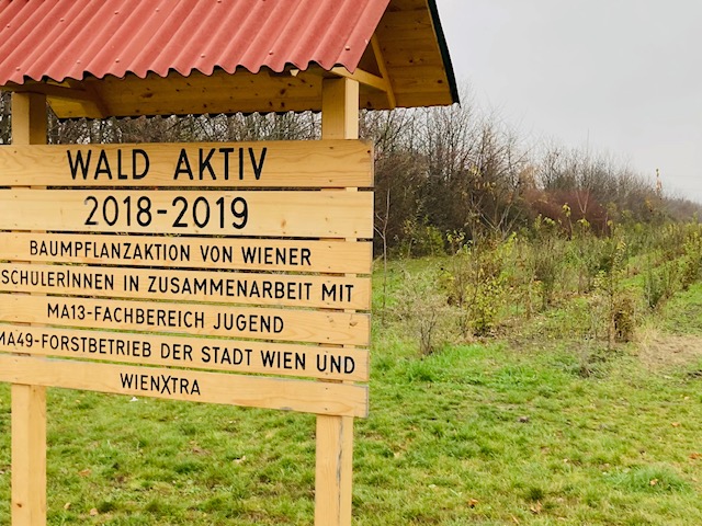 There are of course many parks (about 5% of the city) but it is perhaps the woods and forests (18%) which are a defining feature of the city itself, providing numerous areas for recreation, recuperation, and a chance to be chased by wild boars (no more so than our esteemed ambassador, Leigh Turner). What I am trying to tell you is that the Forestry Office is quite busy, espousing the principles of “semi-natural woodland maintenance in its work in the Vienna’s woods” where tree species are “selected based on natural local conditions, and the woods are rejuvenated naturally.” In short there is a lot of vegetation, in natural woodland reservations, biosphere parks, city woods, source protection forests and, critically, our garden. And if that wasn’t enough, there are even guided woodland tours and a special project called “Woodland Education” where young people are press-ganged into special planting projects like this one: